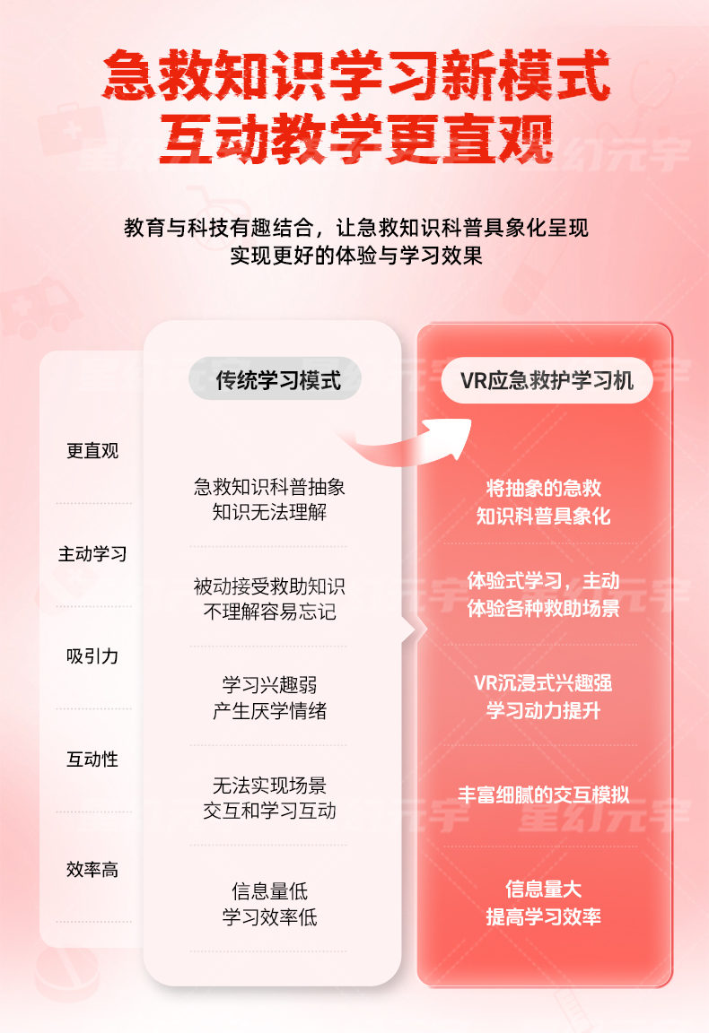 - 沉浸式学习,提升学习效果:依托VR技术构建高度还原的应急救护场景,让学习者仿佛置身真实事故现场,全方位调动视觉、听觉、触觉等多种感官参与学习。相较于传统培训,能更深刻地理解和记忆急救知识与技能,大幅提升学习成效。